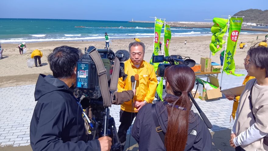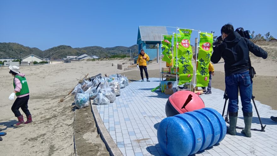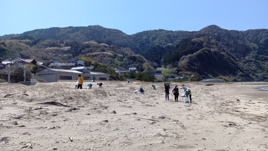 4月11日午前10時30分から1時間行われた海岸清掃活動には、地元ボランティア(はまひるがお)など約35人が参加しました。
